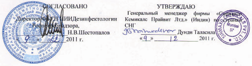 ![]() ИНСТРУКЦИЯ 002/2011 по применению дезинфицирующего средства (кожный антисептик) «Санискраб С» Москва, 2011 г. ИНСТРУКЦИЯ № 002/11 по применению дезинфицирующего средства (кожный антисептик) «Санискраб С» Инструкция разработана в ФБУН НИИДезинфектологии Роспотребнадзора Авторы: Мельникова Г.Н., Пантелеева Л.Г., Анисимова Л.И., Рысина Т.З., Новикова Э.А. ОБЩИЕ СВЕДЕНИЯ 1.1. Средство «Санискраб С» представляет собой готовый к применению кожный антисептик в виде прозрачной жидкости розового цвета с характерным запахом. Содержит: спирт изопропиловый 65% и хлоргексидин глюконат 0,5% в качестве действующих веществ, а также вспомогательные компоненты (смягчитель, душистое вещество, краситель и воду). 1.2. Средство обладает антимикробной активностью в отношении грамотрицательных и грамположительных, включая микобактерии туберкулеза (тестировано на микобактерии терра), грибов рода Кандида, а также вирусов парентеральных гепатитов В, С, Д, ВИЧ, гриппа, в том числе А (H1N1, H5N1), парагриппа, герпеса. 1.3. Средство по параметрам острой токсичности при нанесении на кожу и при введении в желудок согласно ГОСТ 12.1.007-76 относится к 4 классу мало опасных веществ. Местно-раздражающие, кожно-резорбтивные и сенсибилизирующие свойства в рекомендованных режимах применения у средства не выявлены. Безопасность применения средства рекомендуется контролировать по летучему компоненту – изопропанолу. ПДК в воздухе рабочей зоны: - изопропанол – 10 мг/м³ (пары); - хлоргексидин глюконат – 0,3 мг/м³. 1.4. Средство предназначено: - для гигиенической обработки рук медицинского персонала в лечебно-профилактических учреждениях, в машинах скорой медицинской помощи, в зонах чрезвычайных ситуаций; - для гигиенической обработки рук работников лабораторий (в том числе бактериологических, вирусологических, иммунологических, клинических и др.), аптек и аптечных заведений; - для гигиенической обработки рук медицинских работников детских дошкольных и школьных учреждений, учреждений соцобеспечения (дома престарелых, инвалидов, хосписов и др.), санаторно-курортных учреждений, пенитенциарных учреждений; - для гигиенической обработки рук работников парфюмерно-косметических, фармацевтических и микробиологических предприятий; предприятий пищевой и пивобезалкогольной промышленности; общественного питания, промышленных рынков, торговли (в т.ч. кассиров и др. Лиц, работающих с денежными купюрами); коммунальной службы; - для обработки рук хирургов и других лиц, принимающих участие в оперативных вмешательствах в лечебно-профилактических организациях (включая стоматологические организации, родильные дома и др.); - для обработки локтевых сгибов доноров на станциях переливания крови и др.; - для обработки кожи операционного поля пациентов в лечебно-профилактических учреждениях и др.; - для обработки кожи инъекционного поля пациентов перед инъекциями (в том числе перед введением вакцин и других манипуляций, связанных с нарушением целостности кожных покровов) в лечебно-профилактических учреждениях, в машинах скорой медицинской помощи, в зонах чрезвычайных ситуаций, в учреждениях соцобеспечения (дома престарелых, инвалидов и др.), санаторно-курортных учреждениях, пенитенциарных учреждениях. 2. ПРИМЕНЕНИЕ 2.1. ГИГИЕНИЧЕСКАЯ ОБРАБОТКА РУК: на сухие руки (без предварительного мытья водой и мылом) н