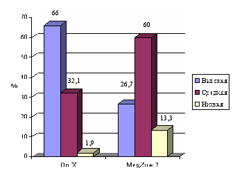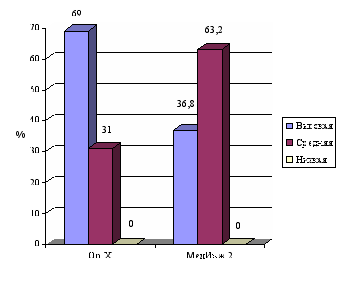 Примечание: * - различие достоверно (p<0,05) по сравнению со значением «до операции»; ≠ - различие достоверно (p<0,01) по сравнению со значением «до операции». Несмотря на то, что у пациентов с аортальным стенозом по средним величинам наблюдается дальнейшая положительная динамика в изменении анализируемых показателей (уменьшение полостей ЛЖ, гипертрофии ЛЖ, увеличения фракции изгнания), статистически достоверным (p<0,05) является только уменьшение ММ ЛЖ в отдаленном периоде у пациентов с ИКС «МедИнж-2». У пациентов с аортальной недостаточностью в обеих группах отмечается статистически достоверное (p<0,05 и p<0,01) уменьшение размеров ЛЖ и ММ ЛЖ, увеличение ФВ. Однако в группе с ИКС «МедИнж-2», несмотря на увеличение ФВ в отдаленном периоде по средней величине, статистически значимого различия не получено (p>0,05). В отдаленном периоде у большинства больных после протезирования аортального клапана отмечается достоверное изменение функционального класса ХСН по NYHA в сторону улучшения (рисунок 4). Рисунок 4. ФК сердечной недостаточности в отдаленном периоде у пациентов после протезирования аортального клапана. ![]() В отдаленном периоде больные преимущественно относятся к ФК I-II по NYHA. В I группе превалируют больные с ФК I (54,5%), во II – ФК II (67%). Большинство пациентов (54,2%) отмечают высокую эффективность операции в отдаленном периоде (рисунок 5). Рисунок 5. Оценка эффективности операции пациентом в отдаленном периоде после протезирования аортального клапана. ![]() Большинство пациентов в отдаленном периоде оценивают эффективность операции как высокую, 69% и 36,8% в I и во II группах соответственно. Об улучшении качества жизни пациентов в отдаленном периоде также свидетельствует тот факт, что 45,5% и 29,4% пациентов вернулись к исходной (обычной) трудовой деятельности, а 13,6% и 35,3% пациентов перешли к более легкому труду, соответственно в I и во II группах (рисунок 6). Рисунок 6. Трудовой статус пациентов в отдаленном периоде после протезирования аортального клапана. ![]() Отдаленные результаты протезирования митрального клапана Из отделения было выписано 93 пациента после митрального протезирования. Исследование завершено в ноябре 2010 года. Наблюдение завершено в 92,06% случаев в III группе и в 100% в IV группе. Полнота и сроки исследования представлены в таблице 17. ^