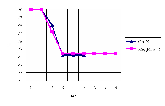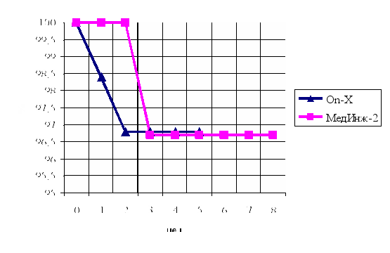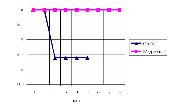 Отдаленная летальность Отдаленная летальность составила 5,8% (3 пациента) и 5,5% (2 пациента) соответственно в I и во II группах. В I группе умерло 2 пациента (мужчина и женщина) от ОНМК и 1 мужчина от внезапной смерти, во второй группе 2 женщины от внезапной сердечной смерти, вскрытия в обоих случаях не производилось. Актуарная выживаемость составила: 94,2% и 94,4% для I и II группы соответственно, представлена в рисунке 1. Рисунок 1. Актуарная выживаемость после протезирования аортального клапана (%). ![]() Актуарная выживаемость после протезирования аортального клапана ИКС «On-X» и «МедИнж-2» одинакова. Все летальные исходы возникли в первые три года после протезирования аортального клапана. ^ Случаев эндокардита и тромбоза протеза не зафиксировано ни в одной из групп. Тромбоэмболические осложнения Всего было зафиксировано 6 случаев тромбоэмболических осложнений: 2 случая в I группе, которые закончились фатально и 4 случая во II группе. Все пациенты были с острым нарушением мозгового кровообращения, тромбоэмболий в периферические артерии не зафиксировано. Во всех наблюдениях имеется выраженный неврологический дефицит. По лабораторным данным причиной тромбоэмболических осложнений послужила неадекватная антикоагулянтная терапия (МНО менее 2,0). Линеализированный показатель частоты тромбоэмболий составил 1,2% и 1,8% событий/пациенто-лет, соответственно, в I и во II группах. Свобода от тромбоэмболии составила: 96,2% и 88,9% соответственно и представлена в рисунке 2. Рисунок 2. Свобода от тромбоэмболических осложнений после протезирования аортального клапана (%). ![]() Актуарная свобода от тромбоэмболических осложнений ниже после протезирования аортального клапана ИКС «МедИнж-2», составила 88,9%. Причем при использовании ИКС «On-X» она была выше и составила 96,2%. Все случаи тромбоэмболических осложнений связаны с неадекватной антикоагулянтной терапией, в основном, с пренебрежением пациентов к строгому приему или контролю антикоагулянтной терапией. Все случаи тромбоэмболических осложнений были отмечены в первые 3 года после протезирования. Кровотечения В отдаленном периоде наблюдалось 5 случаев кровотечения, на фоне передозировки непрямых антикоагулянтов (МНО > 4,0). Желудочно-кишечное кровотечение возникло в 3 случаях, носовое кровотечение в 2-х. Во всех случаях потребовалось консервативное лечение (отмена антикоагулянтов, гемостатическая терапия). Линеализированный показатель частоты кровотечение составил 1,9% и 0,9% событий/пациенто-лет соответственно в I и во II группах. Свобода от кровотечения составила: 94,2% и 94,4% соответственно, представлена в рисунке 3. Рисунок 3. Свобода от кровотечения после протезирования аортального клапана (%). ![]() Различий в актуарной свободе от кровотечений между группами не наблюдалось. Все кровотечения развились в первые 2 года после протезирования, на фоне неадекватной терапии антикоагулянтами (МНО более 4,0). ^ Случаев механических дисфункций протезов не зафиксировано ни в одной из групп. Свобода от всех клапансвязанных осложнений представлена в таблице 13. ^
